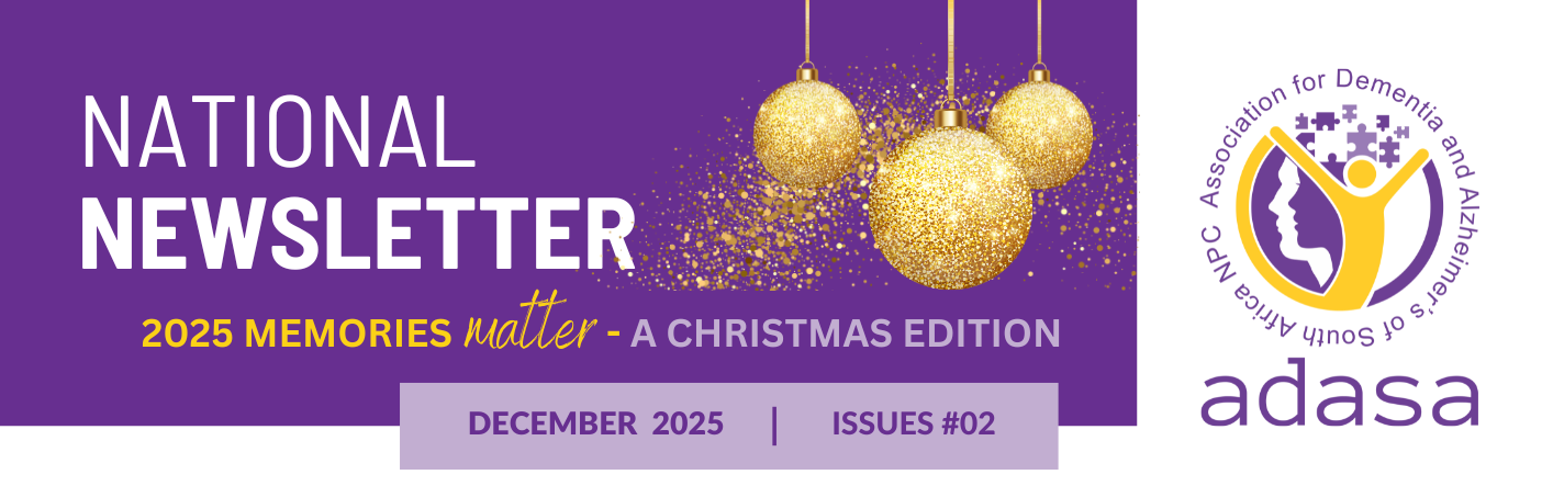 Alzheimer’s South Africa NPC (ASA) was founded in 1985 as a non-profit organisation managed by a national executive council. The acronym ASA is also used for Athletics South Africa and therefore confused people with ASA (Alzheimer’s South Africa). People enquired if Alzheimer’s South Africa also included other types of dementia. As we do include all types of dementia, we changed our name to the Association for Dementia and Alzheimer’s of South Africa NPC (ADASA) as was registered at CIPC.